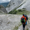 Der Soldatenweg war unser Ziel. Pünktlich starteten wir am Wanderparkplatz Richtung Dammkarhütte. Kaum gestartet setzte auch schon starker Regen ein. Dank guter Tourenplanung waren wir entsprechend vorbereitet und konnten mit Regenkleidung die Tour fortführen. Doch am Einstieg zur Route war klar, bei dem Wetter ist an Klettern nicht zu denken. Auch das ist Teil der Ausbildung – Risikoeinschätzung und auch mal „abzubrechen“. So nutzten wir das Gebiet um die Dammkarhütte, um das Gehen in weglosen Gelände sowie das Abfahren im Geröll zu üben. Den Nachmittag verbrachten wir noch im Klettergarten Sonnenplatten, wo wir einige Mehrseillängen klettern konnte.