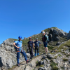 Am Freitag stand die Abschlusstour auf dem Programm: Der Südwestgrat der Viererspitze. 4 Seillängen im 3. Schwierigkeitsgrat mit der Schlüsselstelle 4+ direkt am Einstieg der Route. Start war wieder der Wanderparkplatz am Dammkar. Von dort ging es auf dem Wanderweg bis kurz unter die Mittenwalder Hütte. Dort zweigt der Weg links ins weglose Gelände ab. Wir suchten uns den Weg um die letzten Schneefelder bis in die Kreuzklamm. Dieser folgten wir bis zum Einstieg in den Südwestgrat. Die Einteilung der Seilschaften erfolgte schon am Vorabend, sodass wir schnell in der Route waren. Am Gipfel gab es dann eine kurze Brotzeit bevor wir den Abstieg zur Dammkarhütte nahmen. Nach der kräftezehrenden Tour kehrten wir noch beim nahe gelegenen Italiener ein und konnten den Abend mit dem Abschlussgespräch beenden.